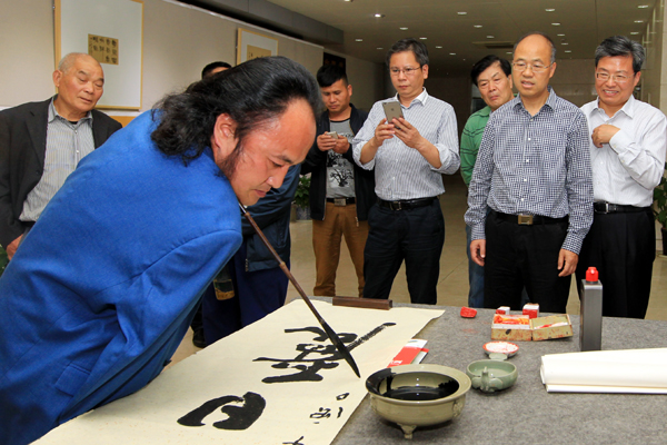 尹永杰副书记首先来到市区城南名人广场文长画院,出席以“有爱不孤单”为主题的我市优秀残疾人书画家、孤独症儿童代表联合书画展启动仪式。此次书画展由市残联主办,市文长书画院承办,集中展示了我市无臂书画家陈伟强、丁京华和孤独症儿童代表毕昌煜书画作品。在认真欣赏完现场所有书画作品后,他表示,此次展出的残疾人书画作品既展示了残疾人自尊、自信、自强、自立和朝气蓬勃的精神面貌,又让人感受到残疾人这个特殊社会群体中书画爱好者正以健康向上的精神状态参与社会、感受生活、创造财富、实现人生价值。他还饶有兴致地观看了陈伟强以口衔笔书法现场展示,并对其即兴创作题为“风和日丽”书法作品表示赞许肯定。