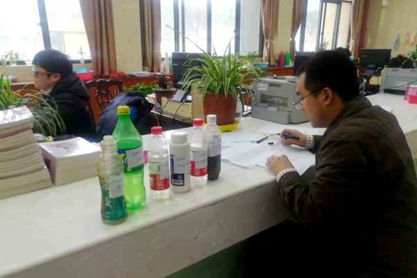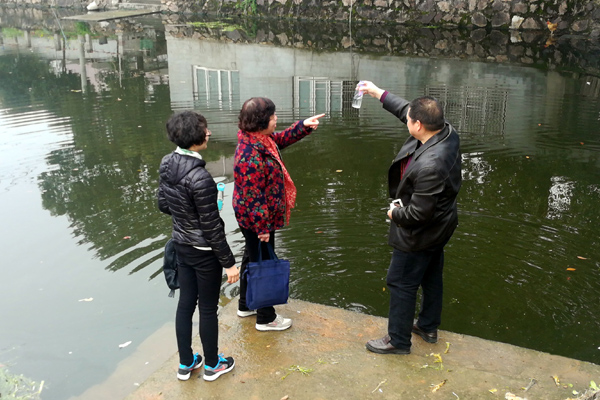 三、深入开展摸排,“揪”出劣V类水体 3月18日9点,“战”前动员后,市残联分9组赴诸暨浣东街道摸排劣V类水体,全体党员干部分赴挂联村地毯式摸排,深入各村田前地头、房前屋后,不漏一处山塘水库、湖泊沟渠,对照标准查劣V,面对疑似勤取样,全体党员干部发扬不怕苦、不怕累的精神,实地踏看各类水体500余处,共取样40余份。在摸排过程中,为准确了解所在村(社区)水体信息,党员干部采取“卫星定位找水体”、“杀回马枪”等方式全面了解所在村(社区)水体情况。3月19日8点30分,部分党员干部在会领导带领下,再次赴浣东街道,对疑似问题再次排查,并填写相关表格,与村干部共同商讨“一点一策”清理办法。下午,根据摸排情况,双方领导冒雨又实地一一确认,保证无一遗漏,并就小质较差的几个水体,现场商定治理方案,明确完成时限。最后双方对相关表格进行了统一汇总,经汇总,浣东街道共摸排出疑似劣V类水体54处。市残联班子领导与浣东街道党政主要负责人就摸排出来的劣V类水体深入交换意见,市残联章天铝理事长对浣东街道下一步剿灭战工作提出了要求。
