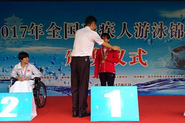 6月20日至26日,2017年全国残疾人游泳锦标赛在湖北省武汉市举行。来自全国各地的26支队伍338名残疾人运动员在男、女共32个大项、218个小项上展开了激烈角逐。我区14岁女孩蒋裕燕,成为绍兴市首位全国残疾人游泳锦标赛冠军。 蒋裕燕代表浙江省队参加本届全国大赛,一举获得肢残组女子青年组S6级200米混合泳、100米仰泳、50米蝶泳、50米自由泳、4×100米混合泳接力和4×100米自由泳接力等6项冠军,并在女子青年组S6级100米自由泳比赛中获得亚军。 蒋裕燕,4岁时就失去右臂和右腿,而且随着身体的成长,截肢处的骨端经常会顶出皮肤,每年都必须到医院去“锯骨头”。小裕燕9岁时开始学游泳,只用了1个月时间就完成了健全孩子3个月的训练课程;11岁那年,初出茅庐的她就在浙江省第九届残疾人运动会上一举获得了女子S6级50米自由泳和女子S6级100米自由泳两个第二名;2015年,蒋裕燕便初显实力,在当年全国残疾人游泳公开赛中勇夺女子S6级50米蝶泳第一名。 今年2月,蒋裕燕刚刚正式进入省队。她当时信心满满地说,“将更加努力,争取创造更好的成绩。”仅仅四个月后,蒋裕燕便以优异的成绩实现了自己诺言,7次站在高高的领奖台上。在热烈祝贺蒋裕燕成功夺冠的同时,祝愿她从新的起点出发,迈向更高的征程。